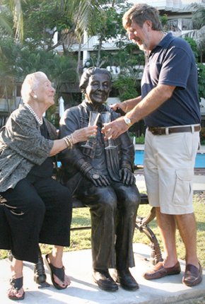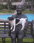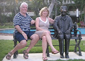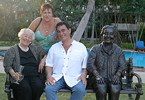 Connie has now been presented with a bronze statue of herself seated outside her home at the Anantara Condominium, Hua Hin, Thailand.