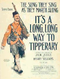The new version was published in 1912 and its reputation began to spread. Oon the 13th August, 1914 a Daily Mail reporter, George Curnock of the Daily Mail, was on holiday in Boulogne. He watched the British Expeditionary Force landing in France whilst standing on the steps of a Boulogne hotel. The passing battalions sang 'Soldiers of the Queen'. 'Dolly Grey'... "and then came a song of another kind altogether, a song that was new and strange to me - rich Irish voices..." He reported to his paper the initial story of Tipperary. Curnock's despatch to the Mail with the story was cabled to all parts of the world and people everywhere took the song to their hearts.