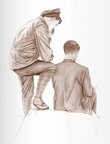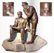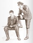 This fine bronze shows Jack sitting on a granite rock, studying the 'Tipperary' songsheet, whilst a First World War soldier leans over his shoulder and plays the song on his mouth organ. It is sited outside the newly renovated Stalybridge Town Hall, just a few hundred yards away from what was once the grand Theatre.