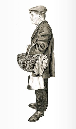 The bronze statue varies slightly from the initial concept drawings as it was decided that the cloth over the basket should be pulled back to reveal the pies underneath.